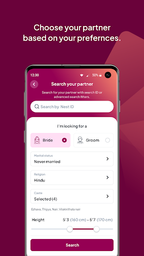 Nest Matrimony is a unique establishment whose prime objective is to provide advisory services to young people who are taking a big leap in their lives, 'Marriage'. Most Trusted Matrimony, We believe that marriage is the most important decision one has to make, and we intend to make that decision perfect. This Matrimonial app is strictly for matrimonial purpose , not a dating purpose App.