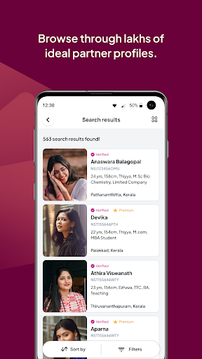 • Easy Partner search from a huge list of Kerala Brides /Grooms.