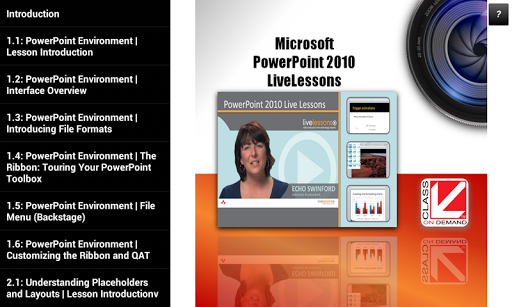 Over 4-1/2 hours of Class on Demand training at your command, becoming a whiz with PowerPoint 2010 has never been easier. Dive in and quickly learn the tasks you need from Echo Swinford, PowerPoint expert and professional trainer. The detailed coverage includes but is not limited to: