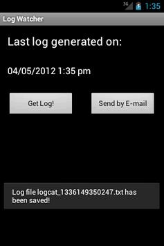 Get the LogCat file from the device with this application! Generates a plain text file on the device's sdcard and also sending it by email!