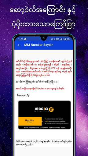 စသည်တို့ကို 99% ခန့် အမှန်ကန်ဆုံးသော ဟောကြားထားပါတယ်။ ဗေဒင်ဝါသနာ ရှင်တွေ ထည့်သွင်းအသုံးပြုကြပါ။ အဆင်မပြေတာများရှိရင် Review လေးတွေရေးခဲ့ပါပေးနော်။