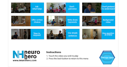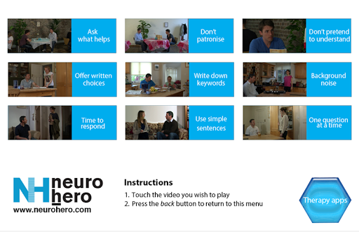 One skill video app helps friends and family learn how to interact with a loved one who is living with a speech and language difficulty. Communication issues often follow stroke, brain injury, dementia, aphasia and a range of other conditions.