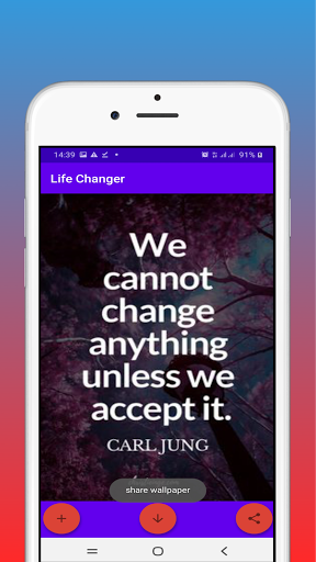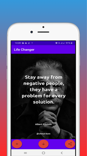 The life-changer app exactly changes your life with a vast variety of attractive positive thinking thoughts. You can use thoughts inside this app to lift up your life in a great manner. We offer you to set as wallpaper, download thoughts and share thoughts option in the app. If you apply the thoughts in the app for your life. you will exactly change your life to success. we hope to give you good thoughts for the day to get new hope to the day. Life Changer app contains various types of thoughts Such as