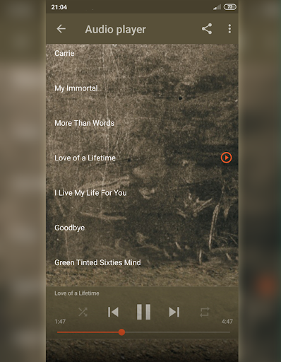 Sebuah aplikasi pemutar lagu mp3 yang berisi lagu slow barat lawas.Yang penuh kenangan dan enak untuk didengarkan saat santai atau mengenang memory masa lalu.Terdapat cukup banyak koleksi lagunya sehingga banyak pilihannya dan tidak cepat membuat bosan.Dengan kwalitas lagu yang tidak cempreng sangat nyaman untuk di dengarkan(disarankan memakai heandseat)untuk mendapatkan suara yang maksimal.