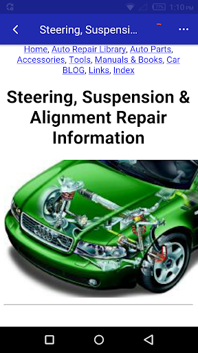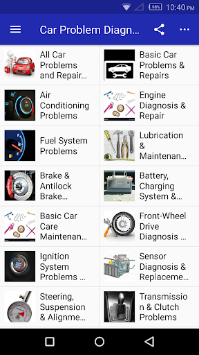 Car Problems & Repair Solutions App tells you about all the possible problems that could ever occur in a car providing you with correct and adequate information to handle the problem. With this app you are able to eliminate guess work and reduce cost incurred by incorrect diagnosis and focus on the exact problem at the time. Whether you are handling the problem yourself or getting help you have the right information at your disposal. This app contains information for all vehicle types. With the various categories and sub categories you are to find the preferred solution. This is a must have app for all experts and professional automobile mechanics there giving you an edge in the area of expertise.For all car owners and users you are no longer in the dark concerning the maintenance of whatever vehicle you make use with this app