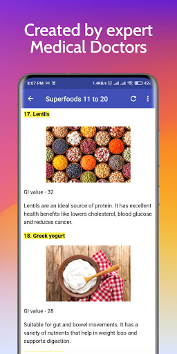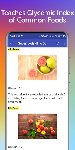 This app will help you to create a diabetes diet, by teaching you all about these Low glycemic Index Foods, and features 100 diabetes-friendly foods