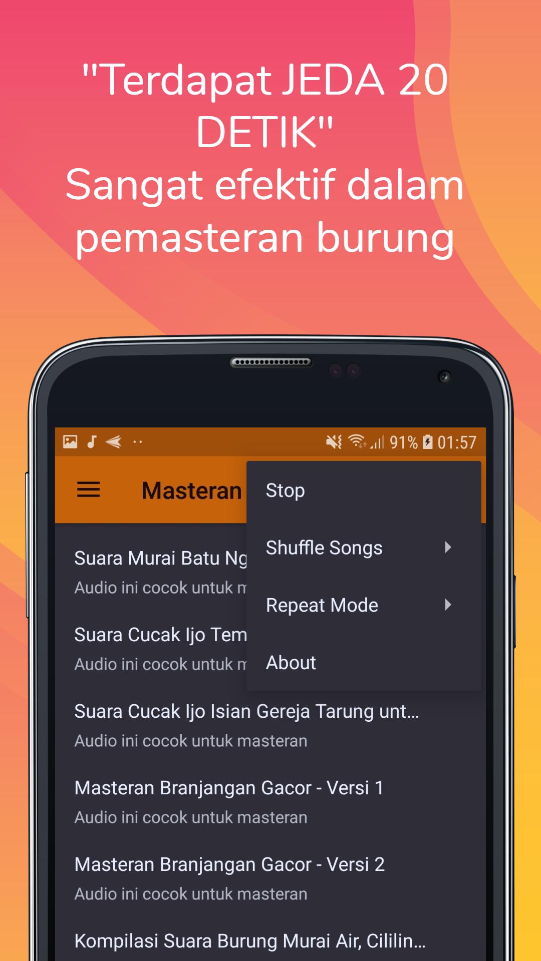 This application contains the most favorite bird singing sound which is very suitable for mastering birds. This application can be run offline alias without an internet connection. Suitable for those of you who have birds and want to make your birds even bigger and have a variety of varied song fillings.