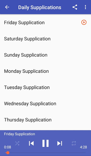 Daily and After Salat prayers is an application that contains a list of daily duas (yaumiya) for all the days of the week and also a list of after Salat(Namaaz) prayers recitations in an audio format.