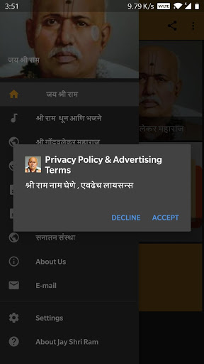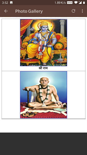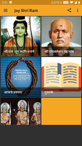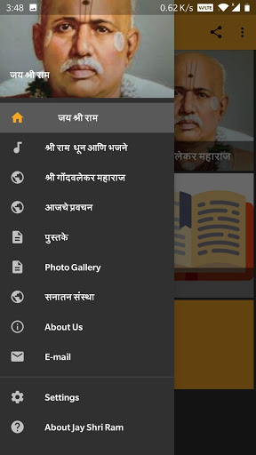 Jay Shri Ram app is developed for devotees of great Saint Shri.Gondavalekar Maharaj . This app contains the devotional music, sounds Ram dhun . We have provided photo gallery in this app, where Photos of Lord Shri Ram, Saint Shri Gondavalekar maharaj are provided.