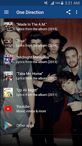 With this free app you have (offline) acces to all One Direction lyrics, wallpapers and more!