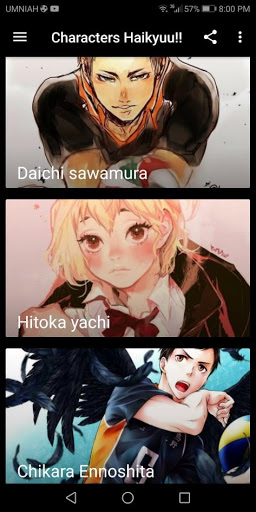 Haikyuu is an anime series with a large audience and fans who faithfully follow the manga of Haikyuu . We created this app for fans who love the series and wish to have wallpapers of their favorite characters in Haikyuu on the cell phone.