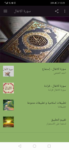 And one of the beautiful features of the Surat Al-Anfal application is reading and listening without the net Ahmad Al-Ajami that you can listen