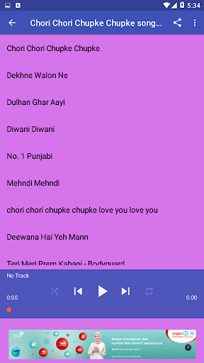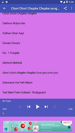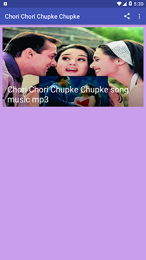 Aplikasi ini kumpulan lagu-lagu dalam film Chori Chori Chupke Chupke yang dibintangi salman khan, semoga para penggemar bisa teringat kembali kenangan masa lalu semoga terhibur dengan aplikasi ini