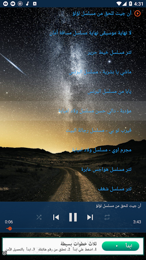 The application of all the songs of the series is a unique application and music that only deals with the songs of Arab series and movies. The application of all songs of the series helps the user to identify the names of the songs placed on the badges of the series or used within the shows of the episodes by providing a button to search for the name of the series and specify the number of the episode. The user can also browse the movies and series according to their ratings and listen to all the songs of the series, the songs and music of each of them. The application of all the songs of the series keeps you from searching for these songs in the search engines and presents them to you in one easy to browse place