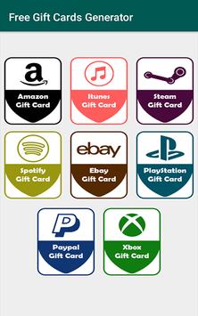 Free Gift Card Generator app is an unofficial application and is not associated with original Amazon Mobile LLC ,eBay Mobile, Game Stop, Game Twist, Google Inc., Apple Inc., Netflix,Target , Wallmart , Microsoft Corporation, Spotify, Inc.,Valve Corporation , PlayStation Mobile Inc., PayPal Mobile, PlayStation Mobile Inc by any manner."