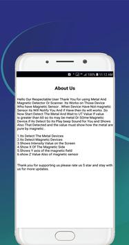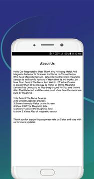 Metal detector Pro app is use to detect metal, metal detector app for android works on magnetic sensors (built-in your mobile device) of your device and detect metals. Metal finder is an application which detects the presence of metal nearby by measuring the magnetic field value.