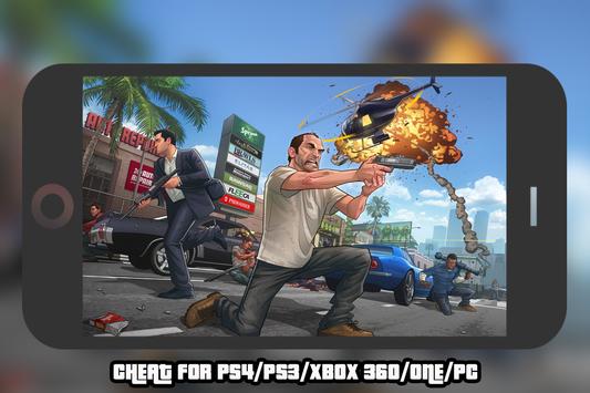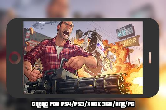GTA 5 cheats app Offre codes for PS4/PS3 including invincibility, weapons, Cars, cheats and More.