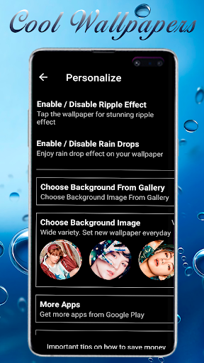BTS 4K Live Wallpapers with Water Ripple Effect app provides all images of hot and cute bts band nowadays.