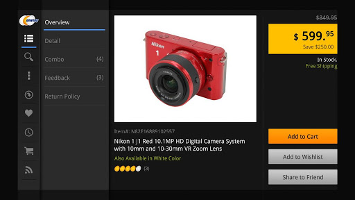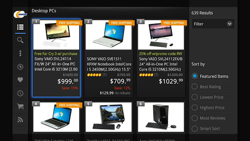 Shop Newegg in a whole new way: on your TV from the comfort of your couch or bed!The Newegg App for google TV gives you access to Newegg’s extensive selection of computer hardware and consumer electronics, while also offering similar functionality as the Newegg.com website Browse, search purchase and save your favorite products to wish lists. With robust social functionality built into the app you can share your purchases with friends and family. As an added bonus, Newegg TV is fully integrated, so you won’t miss another product unboxing or overview. If you have an Android phone, you can easily synchronize it with your Google TV, transferring products you see on the Newegg Android Phone App to the Newegg App for Google TV. Best of all, you can use your Android phone as a remote to conveniently navigate the Newegg App for Google TV. Download today!