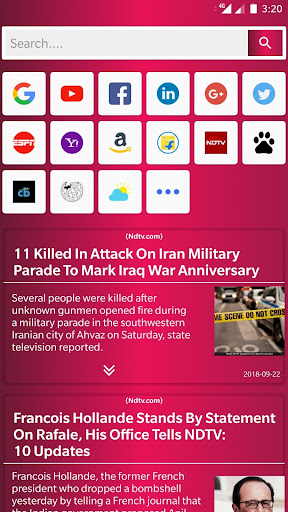 - Quick search: Google, Yahoo, Baidu and other default search engines.