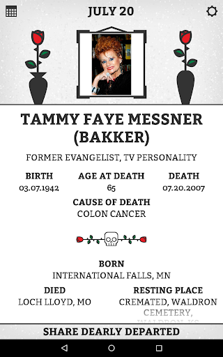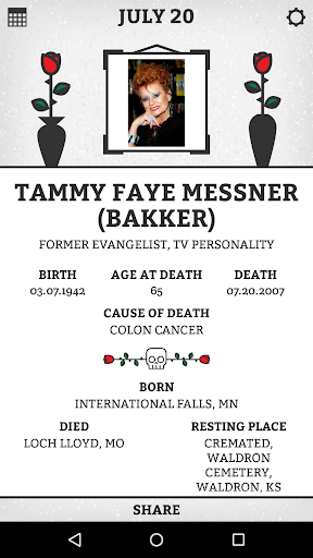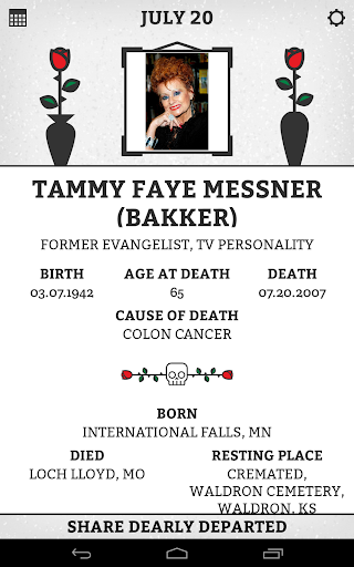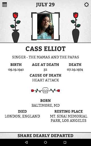 It’s a daily dose of celebrity death that provides factual details of where the particular person featured on that day was born, how and where they died and where they now permanently reside.