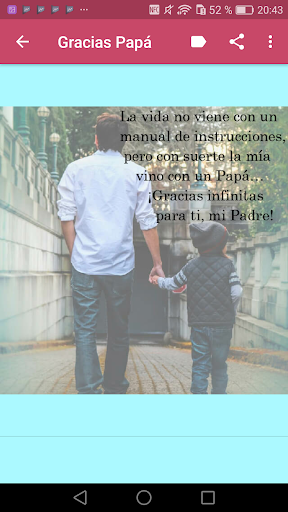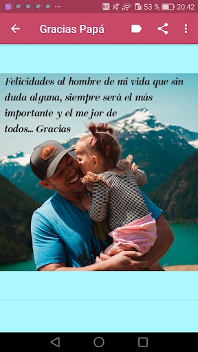 Felicita y sorprende con frases e imágenes para papá, descarga ya mismo esta aplicación y utiliza las frases de felicitaciones en un día tan especial para tu padre.