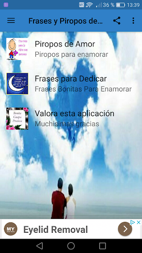 Demuestra tu amor en cualquier momento del día, descarga ya mismo esta aplicación y utiliza las frases y piropos de amor de amor para enamorar a ella, para enamorar a tu marido o frases de amor para decirle a tu novio.