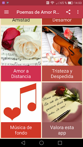 Contenido de la aplicación con poemas de amor para dedicar y enamorar: