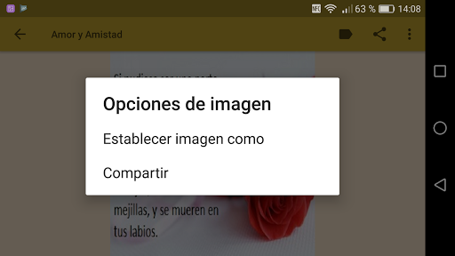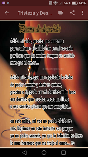 En esta aplicación gratuita hemos utilizado imagenes de poemas de amor bonitos de dominio público, no obstante si alguna imagen tuviera derechos de autor hazlo saber para retirarla de inmediato, queremos ser honestos y cumplir con las normas.