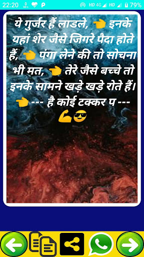 In this app you will find more interesting status related to the best gujjar shayri 2020 and new gujjar attitude status and many more fb attitude status.
