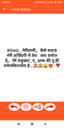 And, this application is completely free and easy to use with nice user interface. We provide status that help you to share Quote of the day and get more likes & engagement. Best thing of app is, you can directly share Shayari as a text, also you can copy text on your local storage. We remind you via this app on every morning with best shayari that can inspire you a lot and help you for self motivation. App contains large collection of Romantic shayari, sad shayari, attitude shayari, funny shayari, good morning shayari, good night shayari, dosti shayari, motivational shayari and friendship shayari etc.