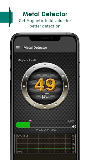 This useful tool uses the magnetic sensor built-in your mobile device and shows magnetic field level when a metal is detected. The value of the magnetic field will increase as you approach a metal and the app will beep to alert the user when it is reached.