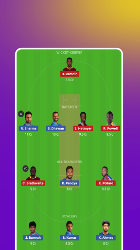 My11team only provides past performance stats info and update about players performance which might help you to predict and create your team accordingly in dream 11 game. It is completely left to you to consider this data while creating your dream cricket team as we only share statistics, updates and other user predictions inside app via comments and polls, based on which you can think and create best dream11, my11circle team. Our information can only be used for free contests on dream11 app, My11circle and other fantasy platforms and we don't give any suggestion for grand league as we would like to give statistics only for free contests only.