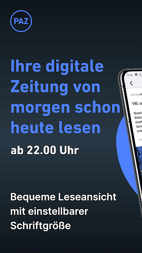 Die E-Paper App der PAZ: Ihre Lieblingsthemen lesen. Zu jeder Zeit. Überall. Lesen Sie bequem auf dem Smartphone oder Tablet Ihre Nachrichten und swipen Sie durch die Artikel Ihrer digitalen Zeitung.