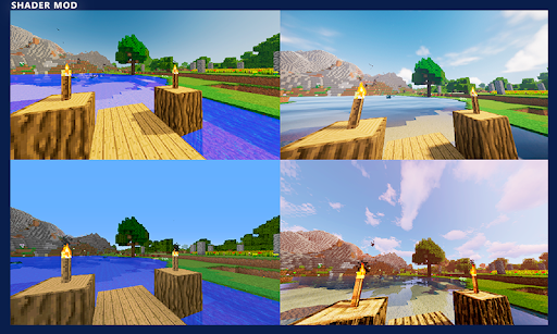 Shader Mod MCPE has collected a set of the most popular shaders created to improve the world of Minecraft. Use them to create the world of your dreams. If you have already appreciated the application, be sure to share your experience with other users in the comments. Write to us if you have any ideas on how to make the app even more interesting.