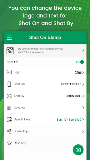 • Only App that permits to add ShotOn stamp for Oppo logo or some other customised logo