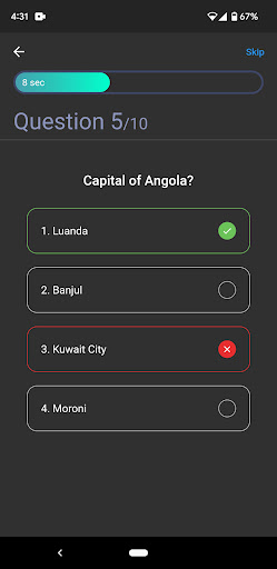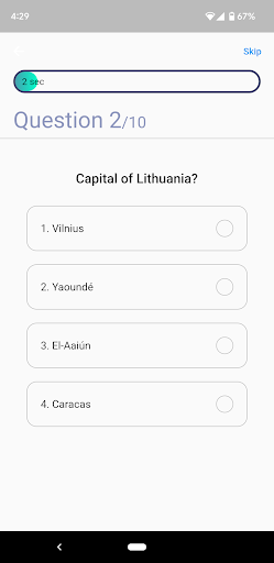 ☆ Test your knowledge with different quizzes. - Capital Quiz.
