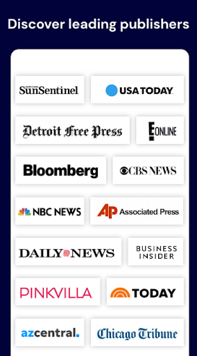 Here are just a few publishers included: AP, Bloomberg, Business Insider, CBS News, ESPN, USA Today, and NBC.