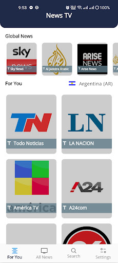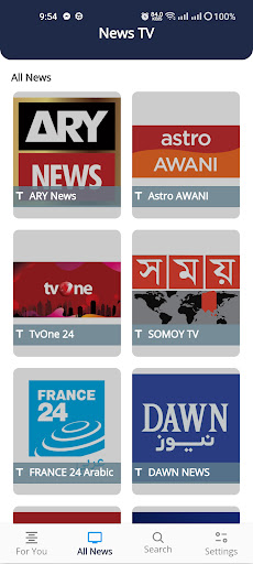 "All News: Live TV - Worldwide" is your comprehensive news companion, featuring four core components: For You, All News, Search, and Settings. This app is your gateway to a world of information, offering live TV streams, in-depth coverage, and personalized news updates. Discover how each component enhances your news experience: