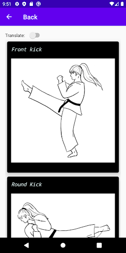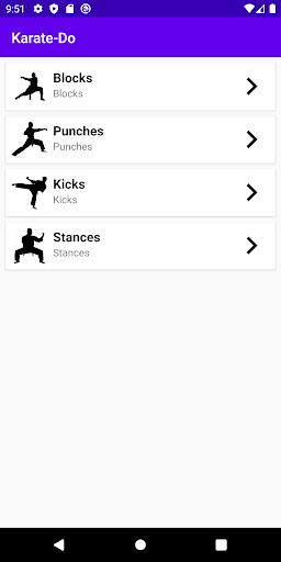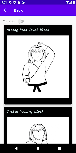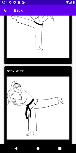 This simple and straight to the point app aimed at beginner karate students, will help you learn both the English and Japanese terms for most of the beginner karate moves. The app contains illustrations of: