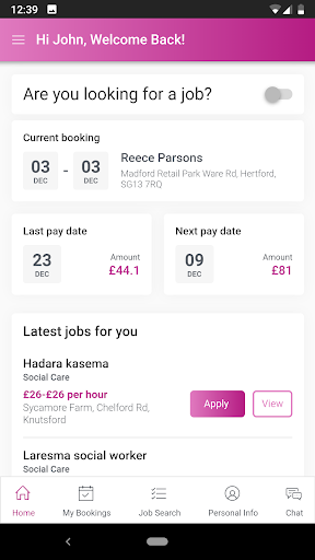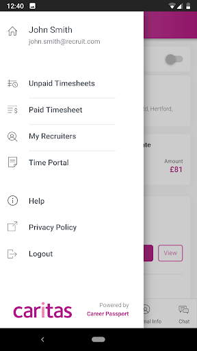 Caritas is an app that allows candidates to view their recruitment profile with our business that includes compliance status, previous timesheets and payments made, timesheets due to be paid to them and new jobs they can apply for.
