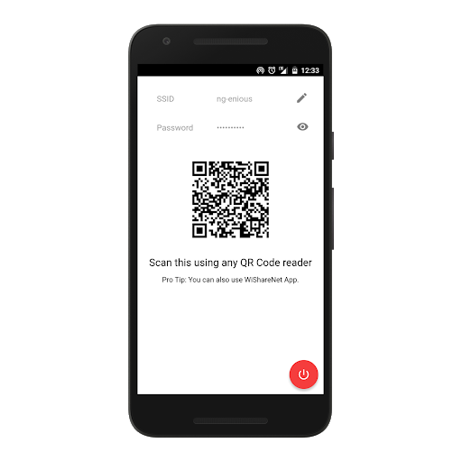 With WiShareNet, you can create a WiFi Hotspot and share your Internet connection. What's awesome about it? You can do this with a simple QR Code scan. No need to give the name of your WiFi AP or to scream aloud the password "top secret" of your Hotspot.