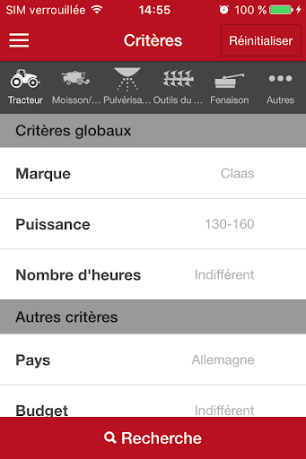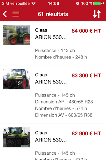 - Consultez, filtrez et triez vos listes de résultats avec le sphotos, les marques, le smodèles, les heures et les prix des matériels