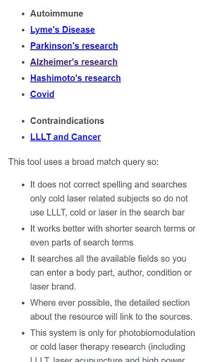 The BioPhotonica Laser Therapy App is great for digging deep into PhotoBioModulation (PBM) research. Watch videos and see over 5000 research studies showing the effectiveness of laser therapy for certain applications. Users that purchase a therapy laser from ColdLasers.Org will also have access to the best protocol library in the industry. See step-by-step instructions dynamically created that adjust for skin color, patient size and condition.