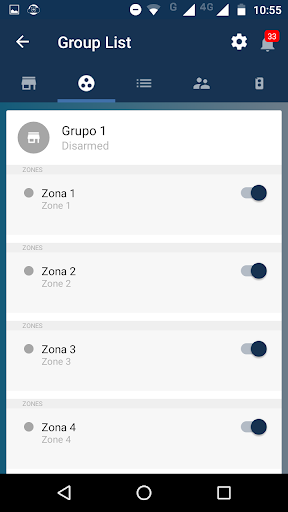 Using a simple interface, you are able to control the system and receive the status of the Cloud Alarm Genno. Enable and disable the alarm; Partial enable (only desired zones); Check the alrm status and the zones status in real time; Control PGM outputs (allows you to activate other devices of your home, as automated gates or lights); Panic button; Receive notifications, as alarm event, activation from other users and so on.