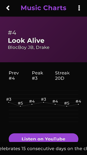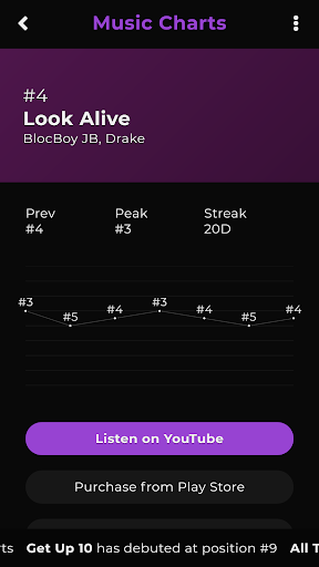 While browsing our lists, just tap any track for access to additional song details as well as links to lyrics and music videos. Also provided are legitimate MP3 download links from the best streaming services and on-demand marketplaces, along with a handy graph that quickly illustrates how your favorite song has performed over the past week.