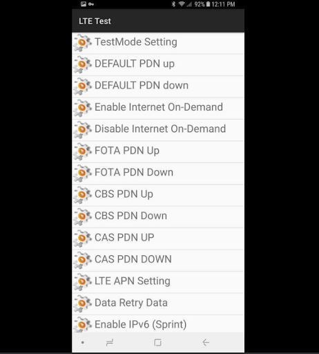 OPEN LTE SETTINGS opens the hidden LTE Menu via com.test.LTEfunctionality.LTEFunctionalityTest and is where many changes can be made.