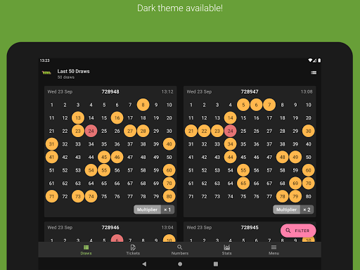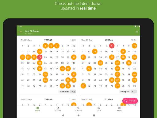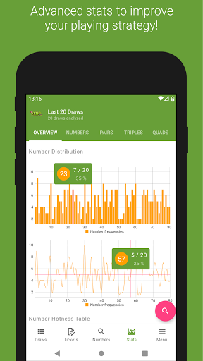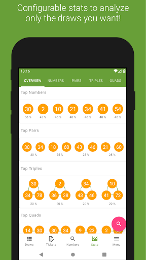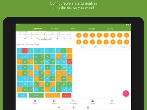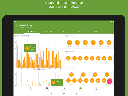 - View advanced statistics, including top pairs, triples and quads for your selected draw range! This way you can improve your playing strategy and increase your winnings!.