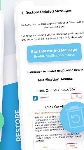Restore Deleted Messages - Sometimes your friends sends you message and instantly delete it without seen by you. Then this feature of Tele Web comes handy for you. You can easily restore that deleted message.