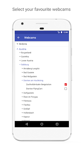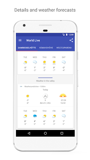 From the overview with all your webcams, you can easily navigate to the details. Here you can play the single webcam, but here you'll find the details from the webcams also. Also, there are the current weather conditions and the weather prediction for the coming 5 days. In the ski areas, the temperature differences between the mountain and valley. Because of that, there is a valley weather prediction for webcams in the mountains.